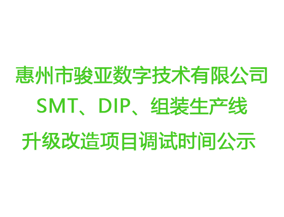 惠州市駿亞數(shù)字技術(shù)有限公司SMT、DIP、組裝生產(chǎn)線升級改造項目調(diào)試時間公示